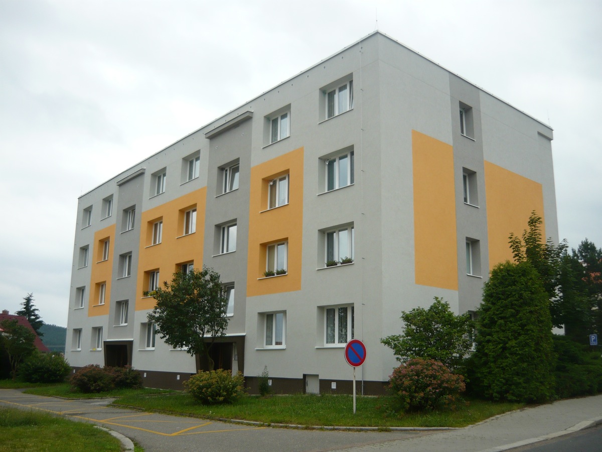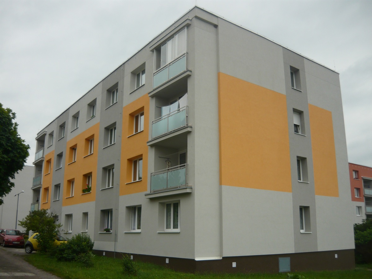 Práce: Zateplení fasády a ploché střechy, výměna oken a dveří, výměna zábradlí za nerezové, oprava podlah lodžií.