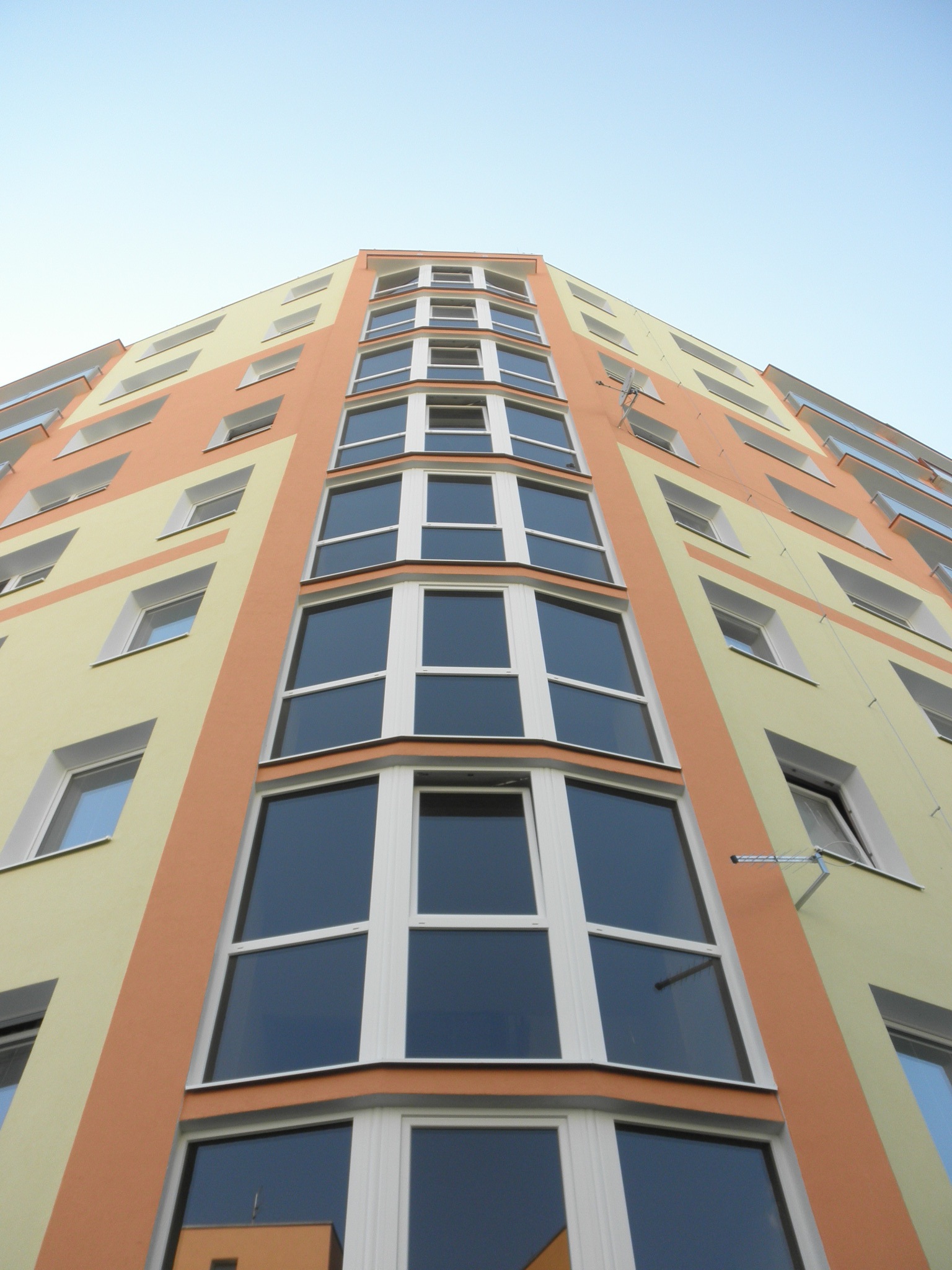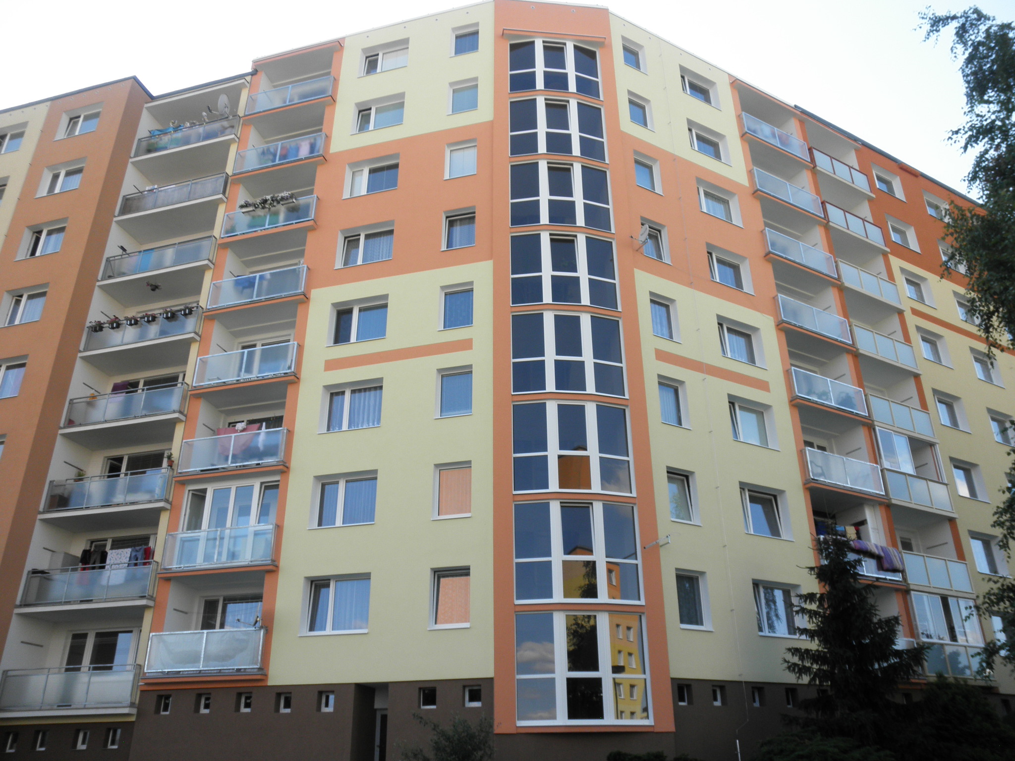 Práce: Zateplení fasády a ploché střechy, výměna oken a dveří, výměna zábradlí, oprava podlah lodžií.