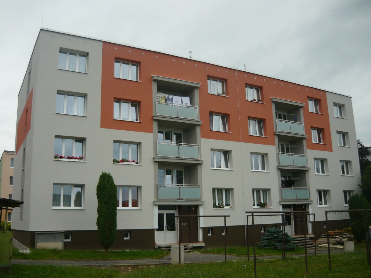 Práce: Zateplení fasády a ploché střechy, výměna oken a dveří, výměna zábradlí za nerezové, oprava podlah lodžií.