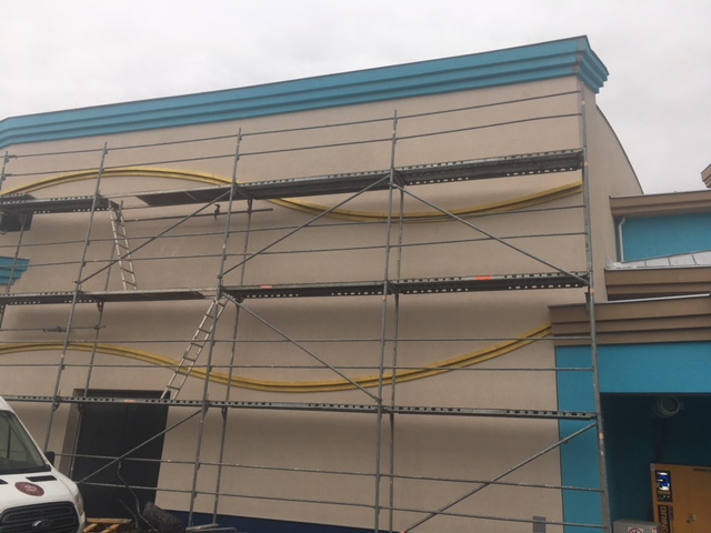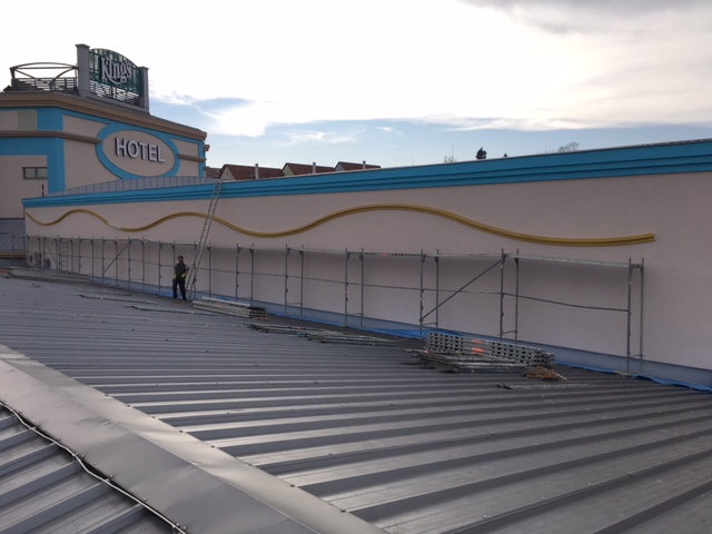 Zateplení několika fasád na členité budově kasina v Rozvadově. Celkové množství přesahovalo 1500 m2 ploch. Na většině byly osazeny dekorační oblouky zlaté barvy s integrovaným osvětlením.