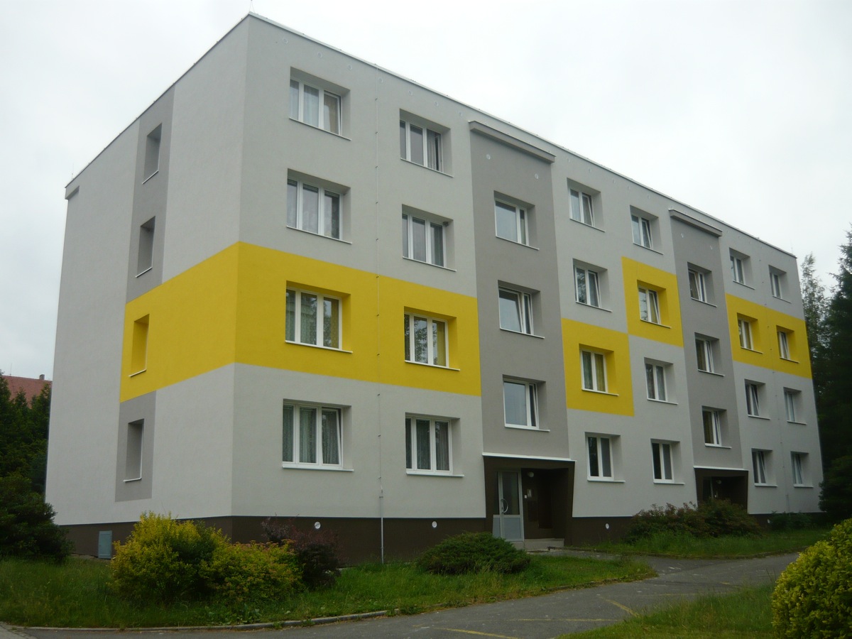 Práce: Zateplení fasády a ploché střechy, výměna oken a dveří, výměna zábradlí za nerezové, oprava podlah lodžií.