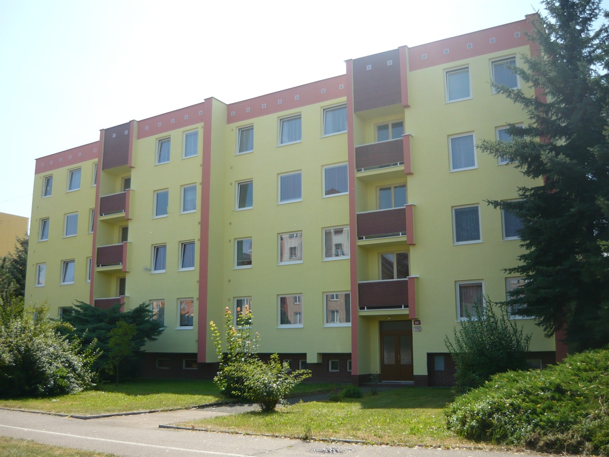 Práce: Oprava fasády domu, nátěr silikonovou barvou, výměna klempířských prvků, rekonstrukce podlah balkonů, výměna sklepních oken a vchodových dveří.